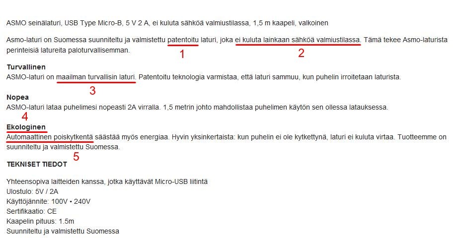 ovat juuri ne argumentit, joihin laturin markkinointi perustuu ja